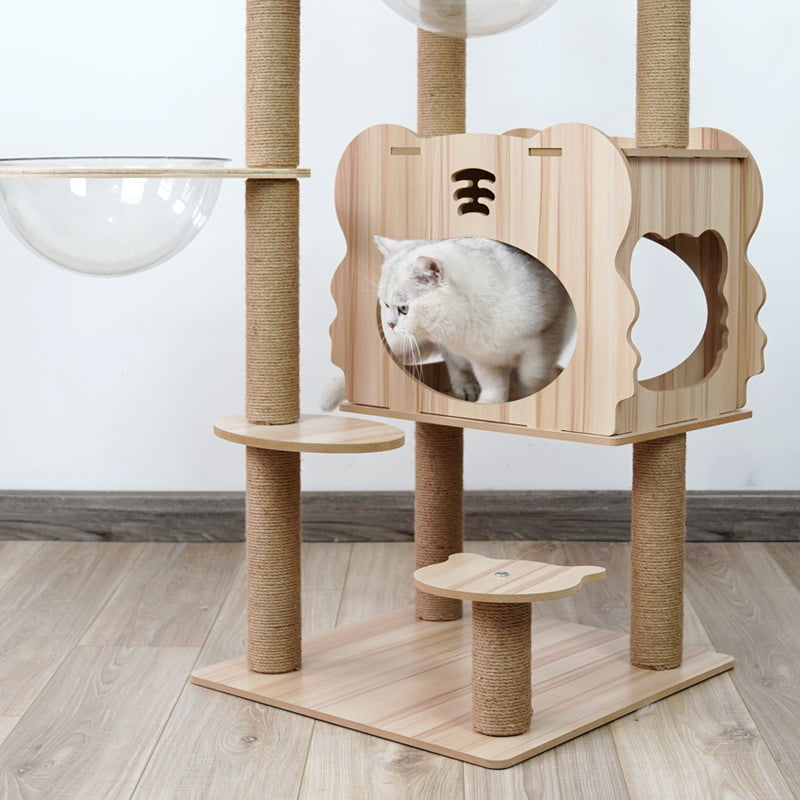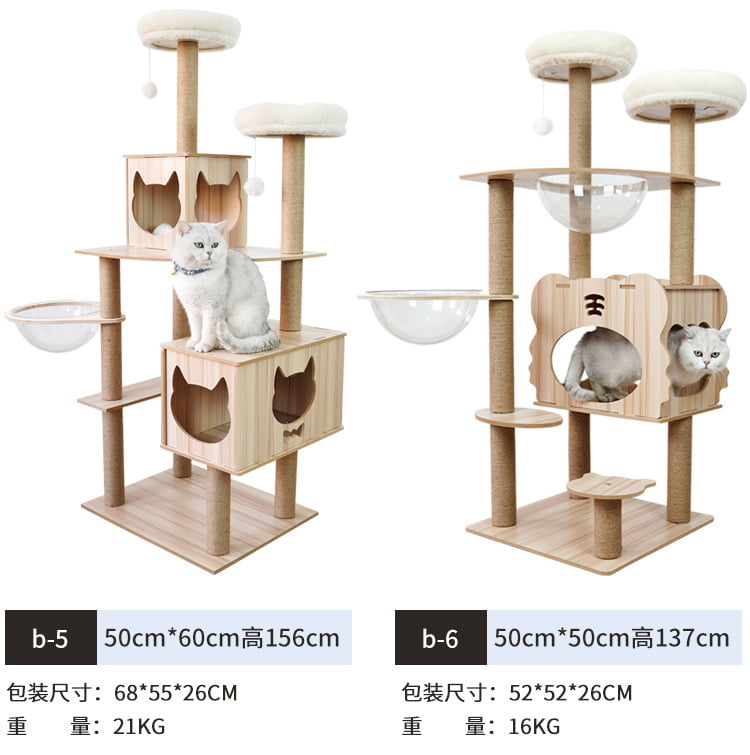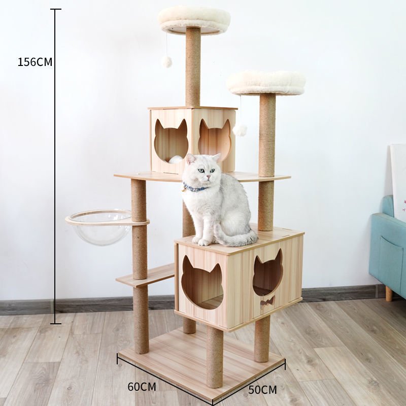 คอนโดแมว คอนโดแมวแบบไม้ มินิมอล พร้อมโดมนอนแบบใส บันไดและกล่องนอน ขนาดใหญ่ พร้อมส่ง ร้านจากไทย