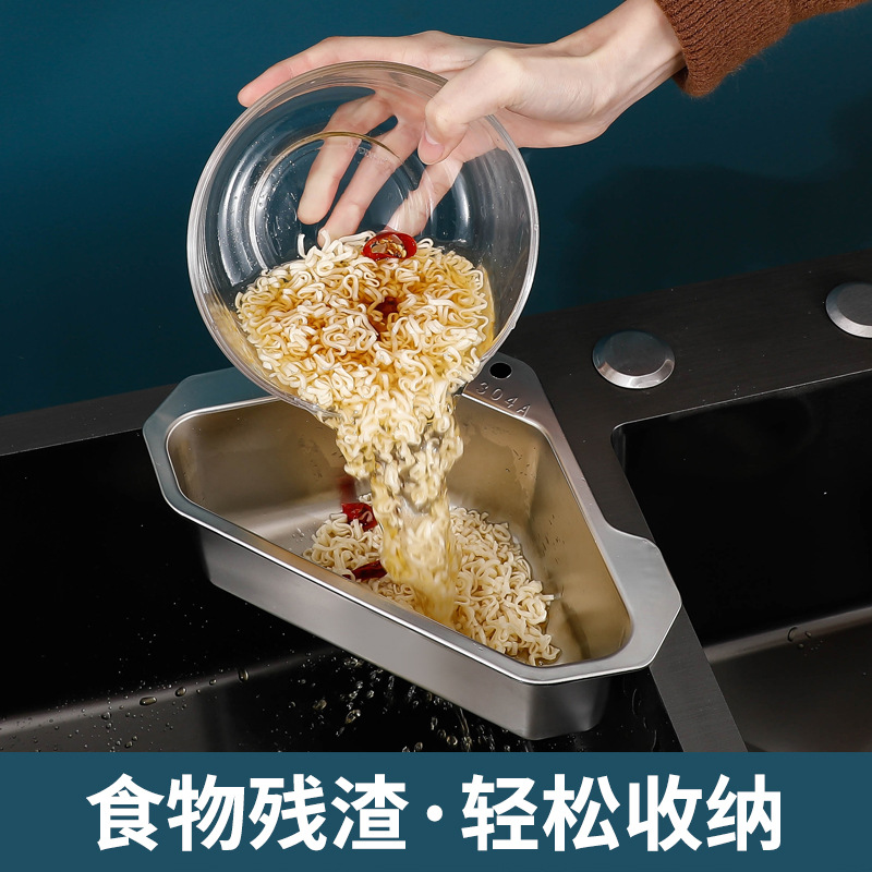 ตะแกรงกรองเศษอาหารทรงสามเหลี่ยม กระจังหน้ากรองอ่างล้างจาน ครัวอ่างล้างจาน ตะกร้าสแตนเลส อาหารผักกรองตะกร้าจัดเก็บ