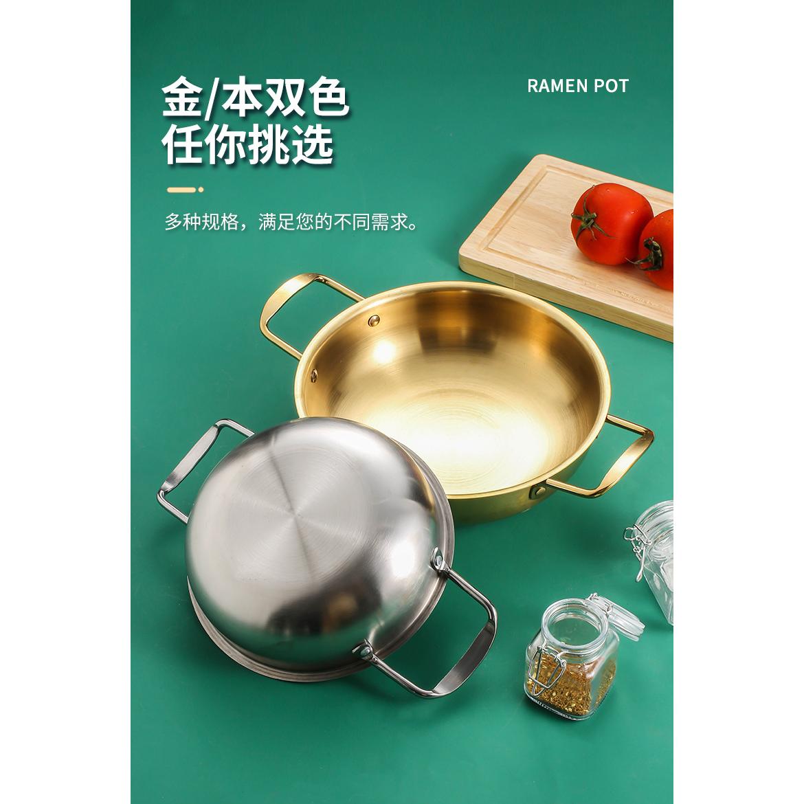 หม้อเกาหลี ชามมาม่า หม้อราเมง หม้อเกาหลีทองเหลือง สแตนเลส เกรด 201 (สีทอง เงิน)
