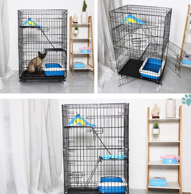 กรงแมว Pet Cage คอนโด3ชั้น กรงสัตว์เลี้ยง กรงแมวมีล้อ กรงหมา ขนาดใหญ่ กรงกระต่าย พับได้ ขนาดใหญ่