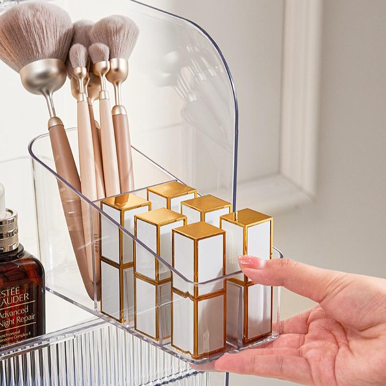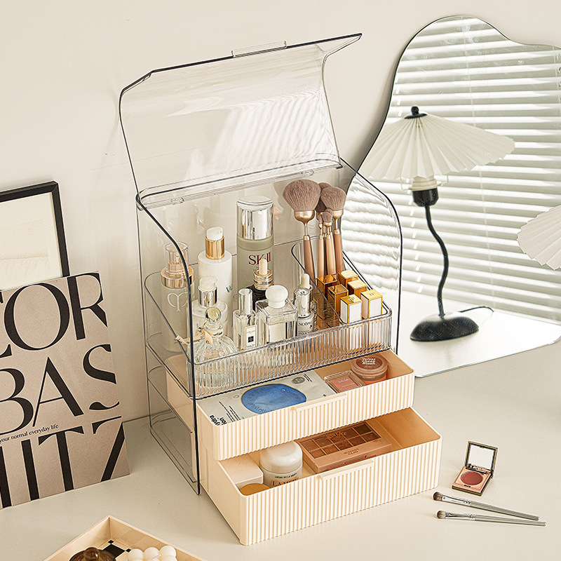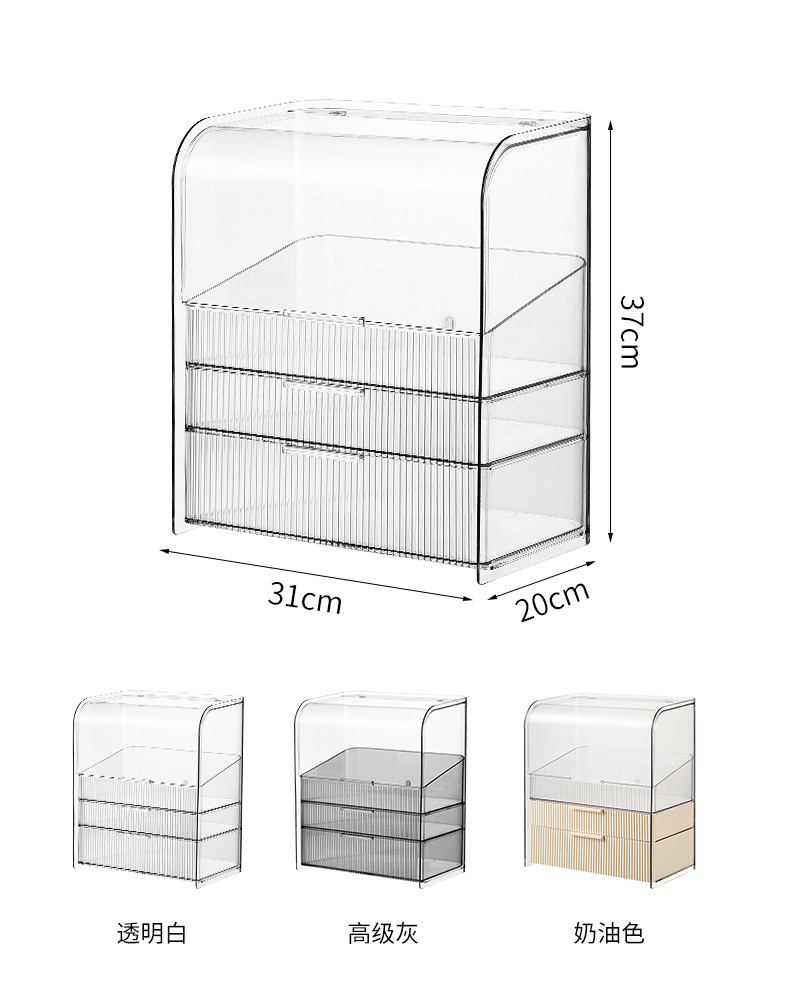 กล่องเก็บเครื่องสำอางค์ ชั้นเก็บเครื่องสำอาง มีฝาปิด มีลิ้นชัก PET กล่องเก็บเอนกประสงค์ กันฝุ่นกันชื้น ความจุขนาดใหญ่ กล่องเก็บของ