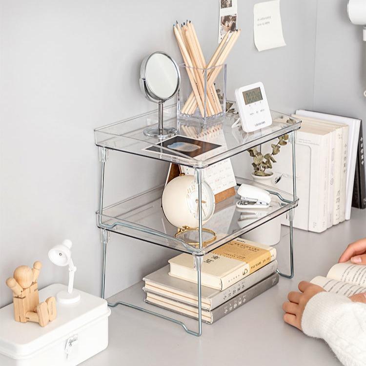 ชั้นวางของ แบบพับขาได้และตัวชั้นเป็นพลาสติกใส แข็งแรง ขาสแตนเลส สามารถเพิ่มพื้นที่และจัดระเบียบโต๊ะทำงาน