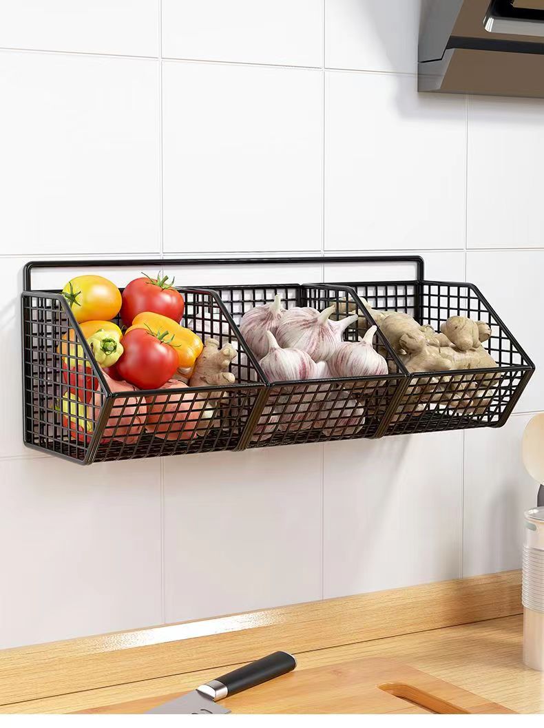 ตะกร้าเก็บหัวหอม กระเทียม ขิง ตะกร้าแขวนของ แบบแขวนผนัง สําหรับครัวเรือน
