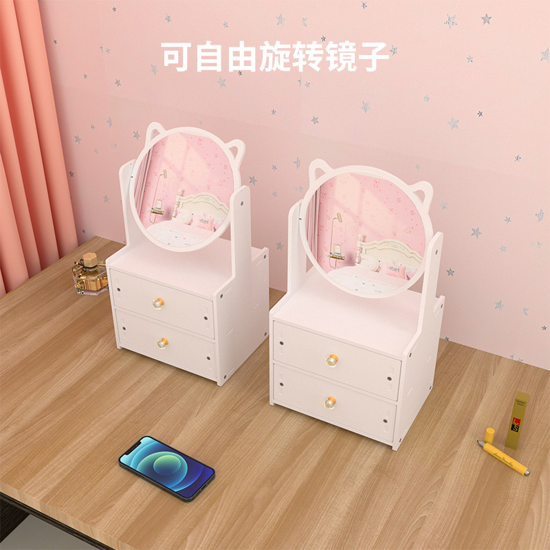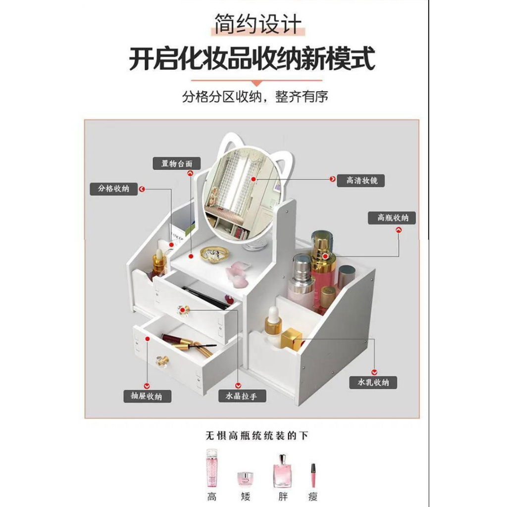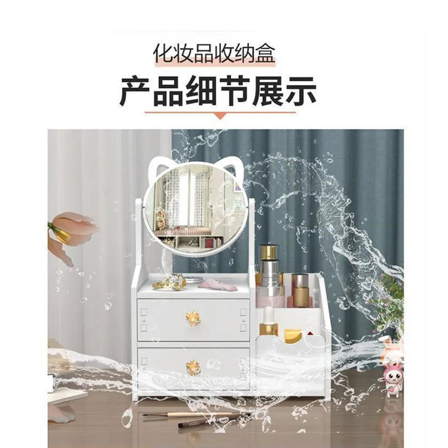 ชื่อสินค้า : กล่องเก็บเครื่องสำอางค์ อุปกรณ์แต่งหน้า มีลิ้นชัก พร้อมกระจกชัด ปรับหมุนได้ สำหรับแต่งหน้า รูปแมว น่ารัก