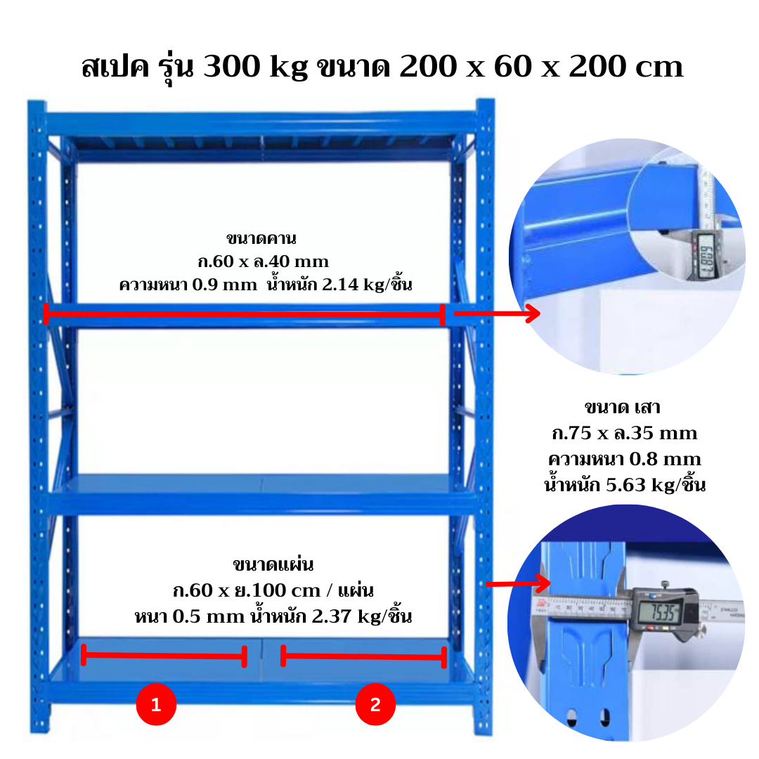 • รับน้ำหนัก 100-300 กก. ต่อชั้น น้ำหนักรวม 35kg./ชุด