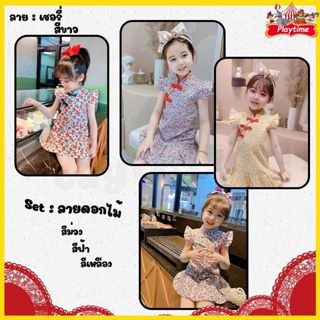 ชุดกี่เพ้าเด็ก ชุดกี่เพ้าเด็กหญิง ชุดตรุษจีนเด็ก ชุดจีนเด็กผู้หญิง ชุดกีเพ้าคอจีน ชุดเดรสเด็ก ลายดอกไม้ พร้อมส่งจากไทย