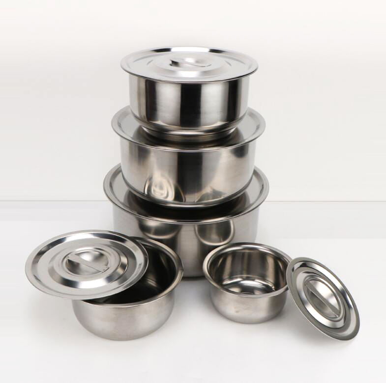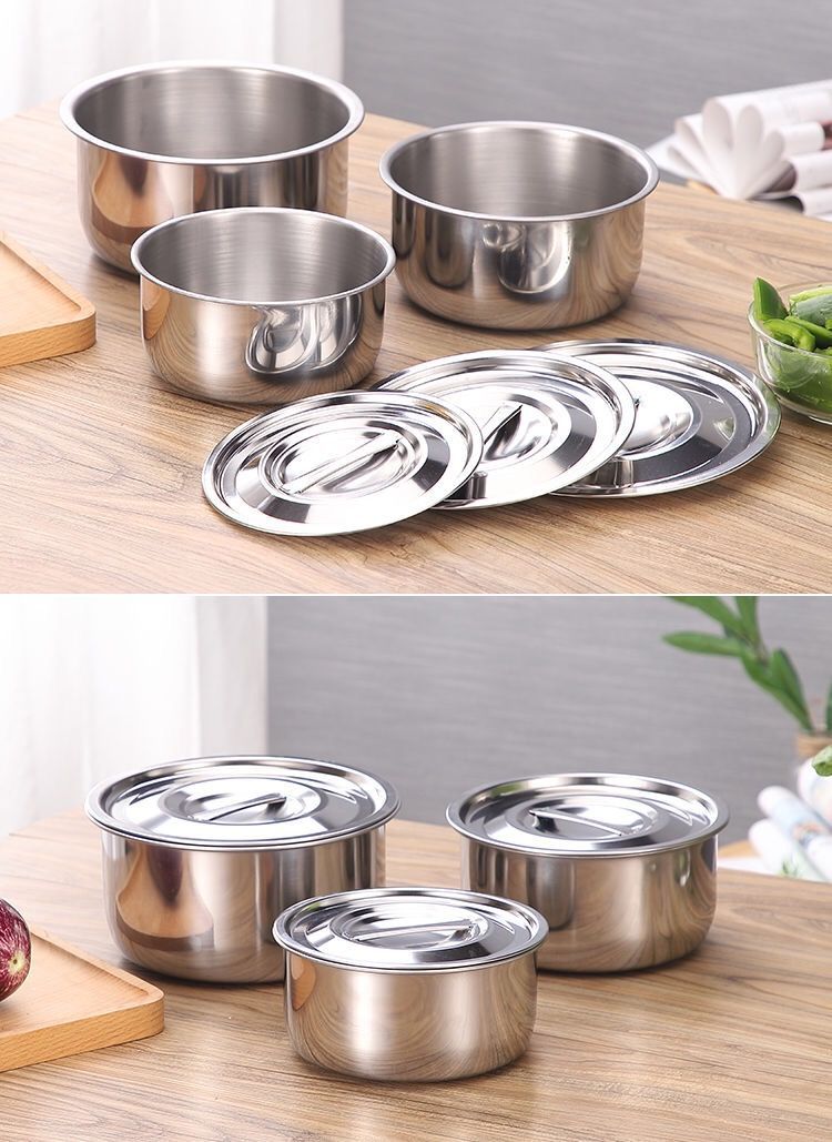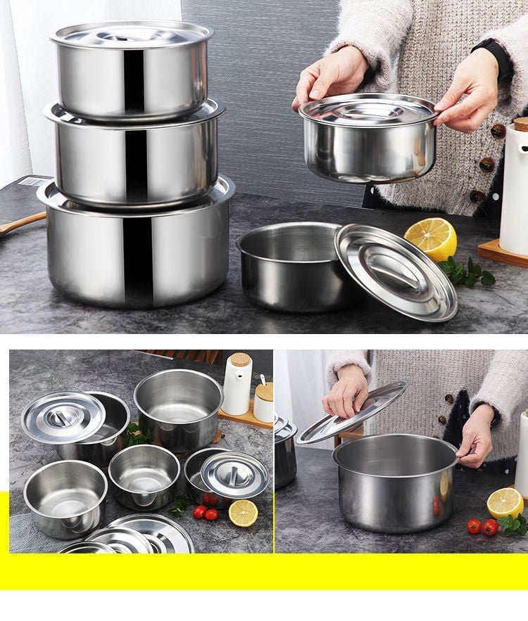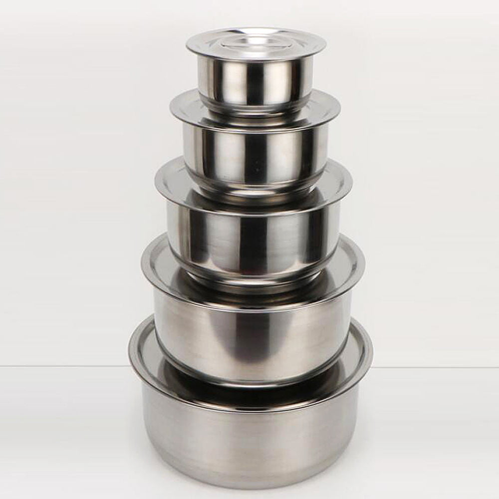 ชุดหม้อสแตนเลส 5 ใบ หม้อแขกพร้อมฝา ชุด10 ชิ้นชามผสมอาหารสแตนเลส ที่เก็บอาหาร ชามเก็บอาหาร กล่องเก็บอาหารสแตนเลส 16-24 Cm