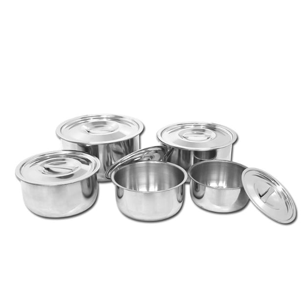 ชุดหม้อสแตนเลส 5 ใบ หม้อแขกพร้อมฝา ชุด10 ชิ้นชามผสมอาหารสแตนเลส ที่เก็บอาหาร ชามเก็บอาหาร กล่องเก็บอาหารสแตนเลส 16-24 Cm จาก 1 รีวิว