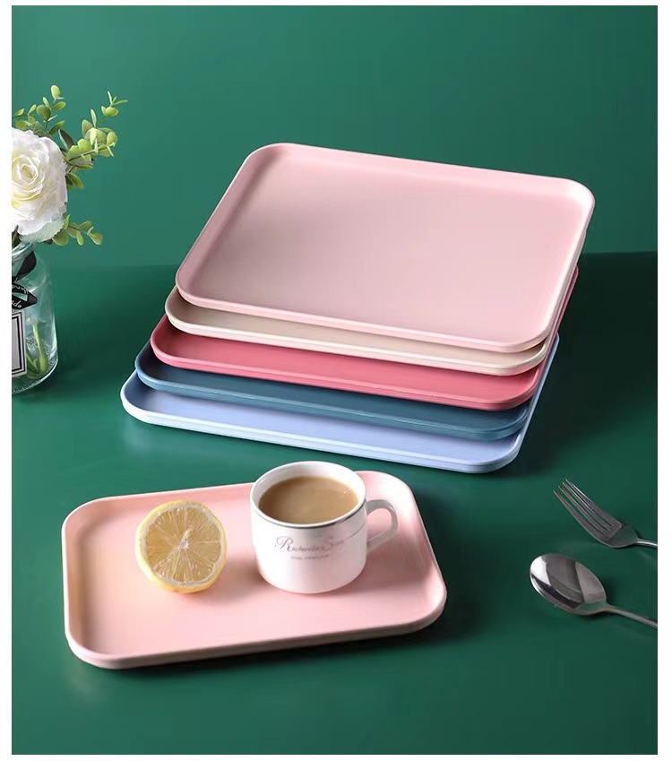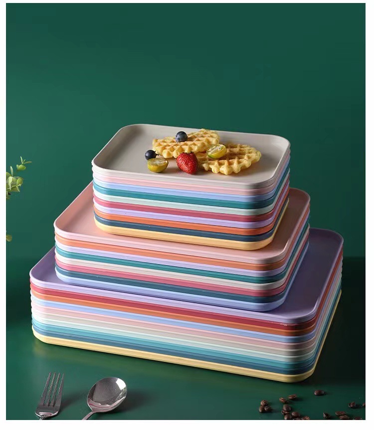 ถาดฟางข้าวสาลี ถาด ถาดพลาสติก ถาดใส่อาหาร ถาดเสิร์ฟอาหาร เนื้อข้าวสาลีเพื่อสุขภาพ สีแคนดี้