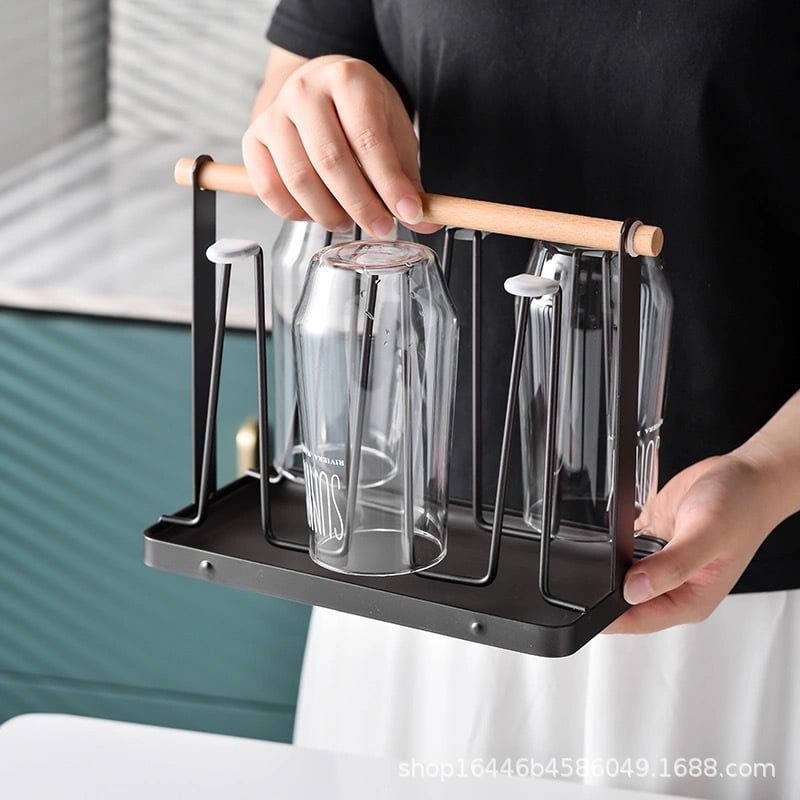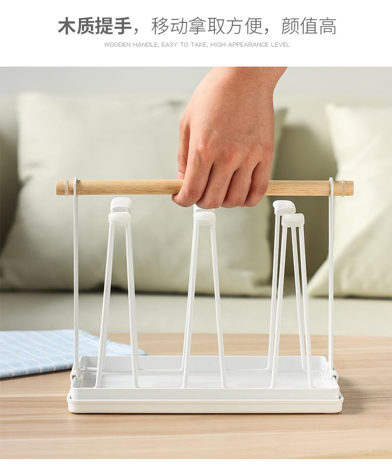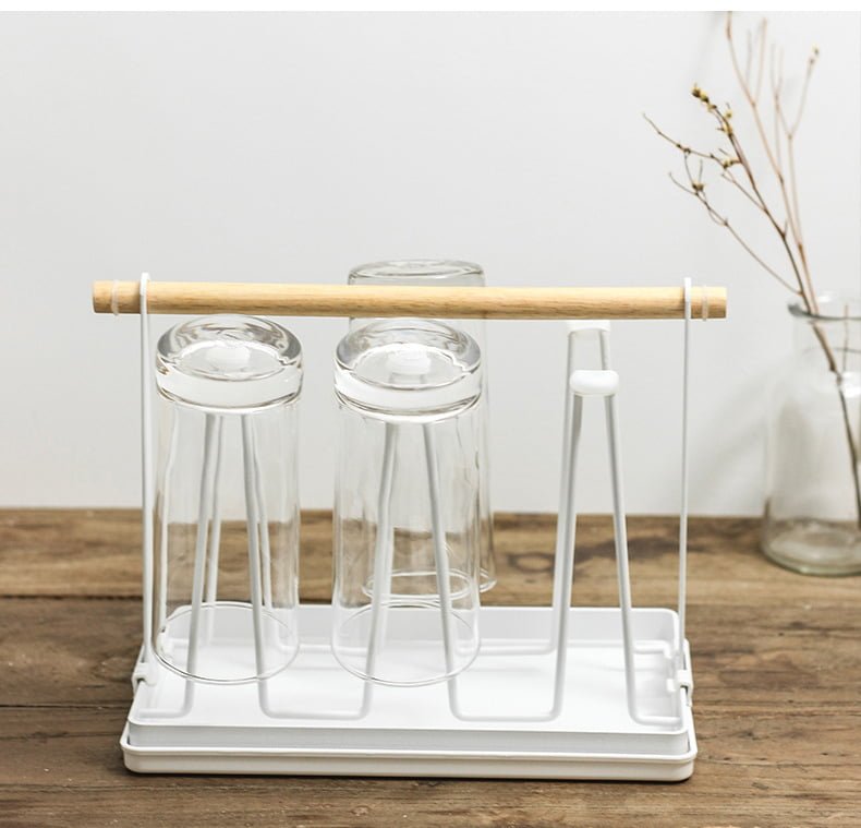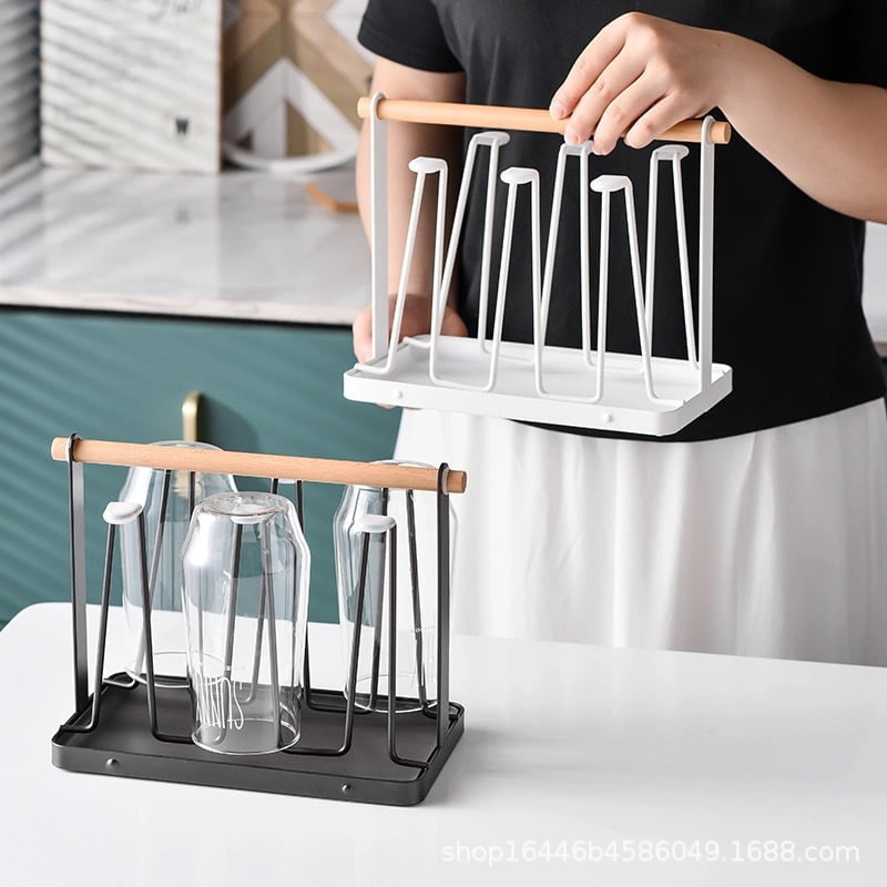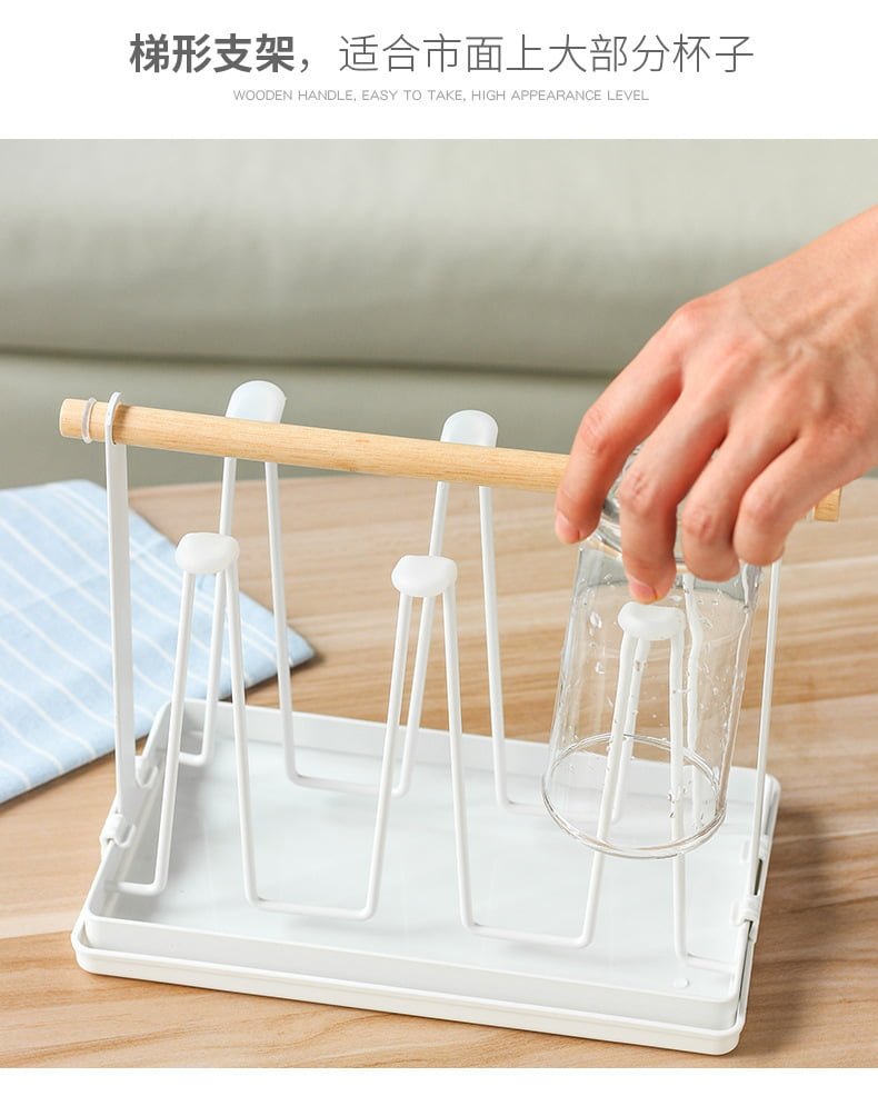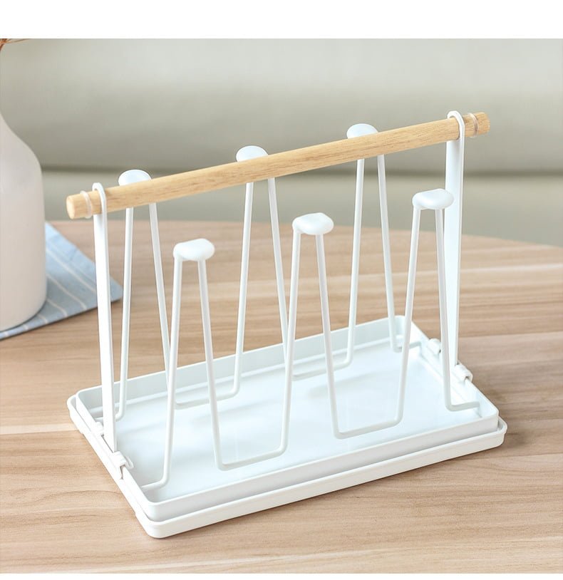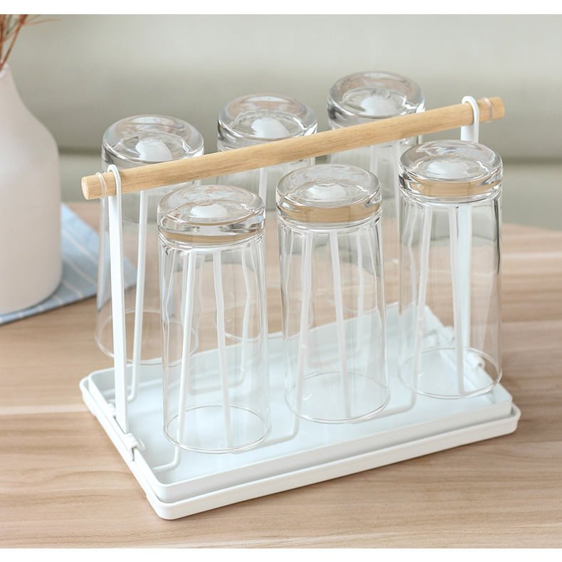 ที่คว่ำแก้ว 6 ใบ ที่วางแก้ว ที่เก็บแก้วน้ำ ที่แขวนแก้ว พร้อมถาดพลาสติก