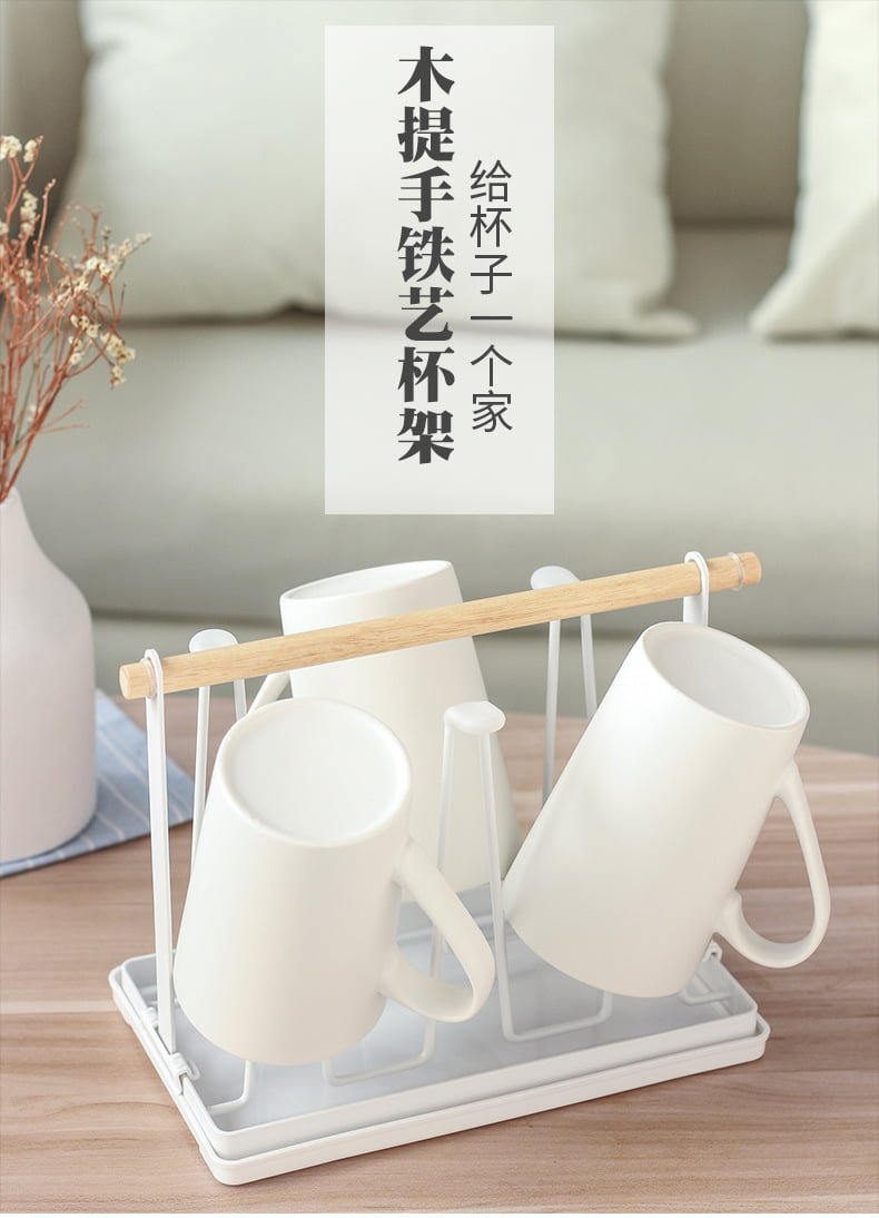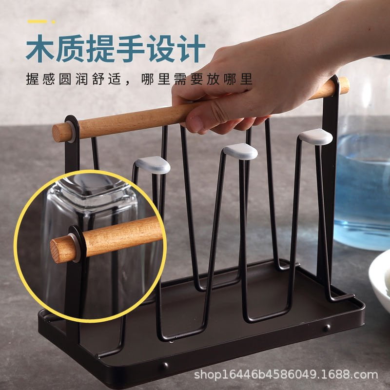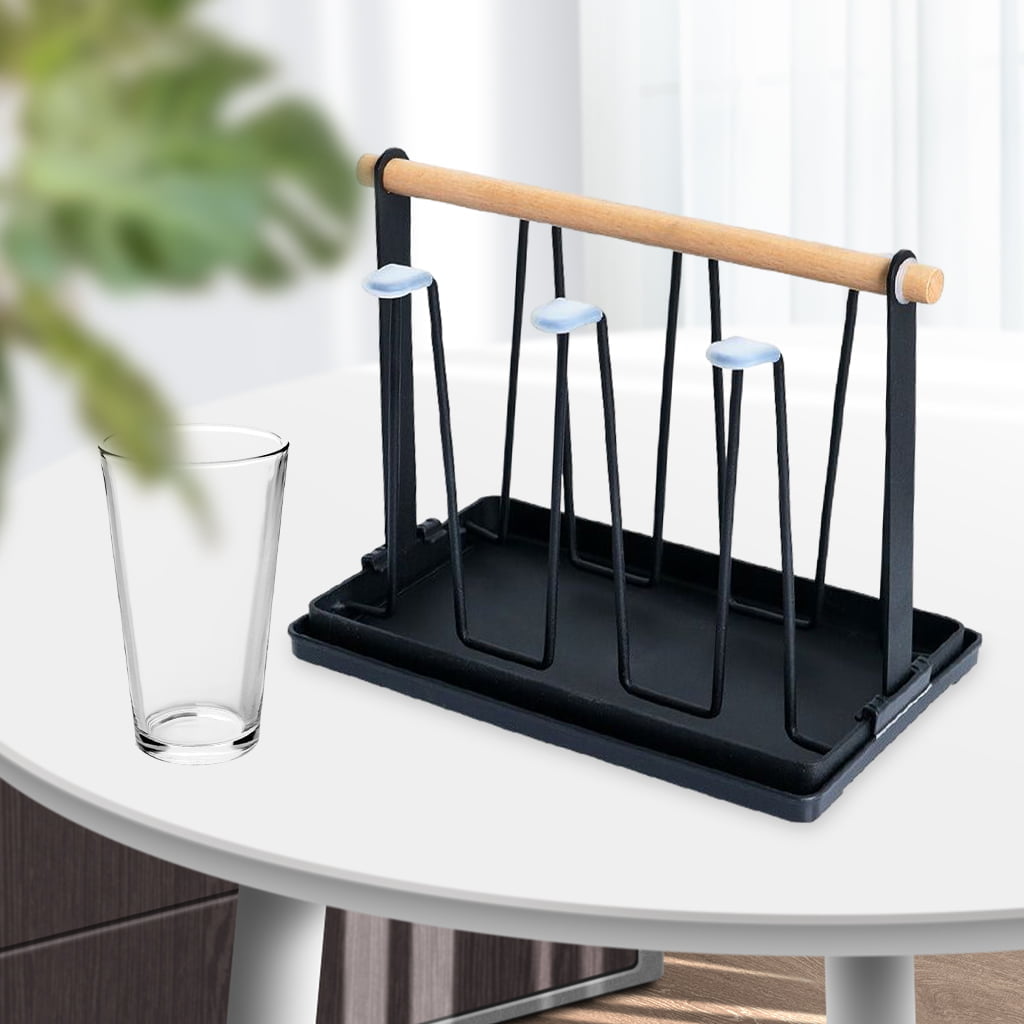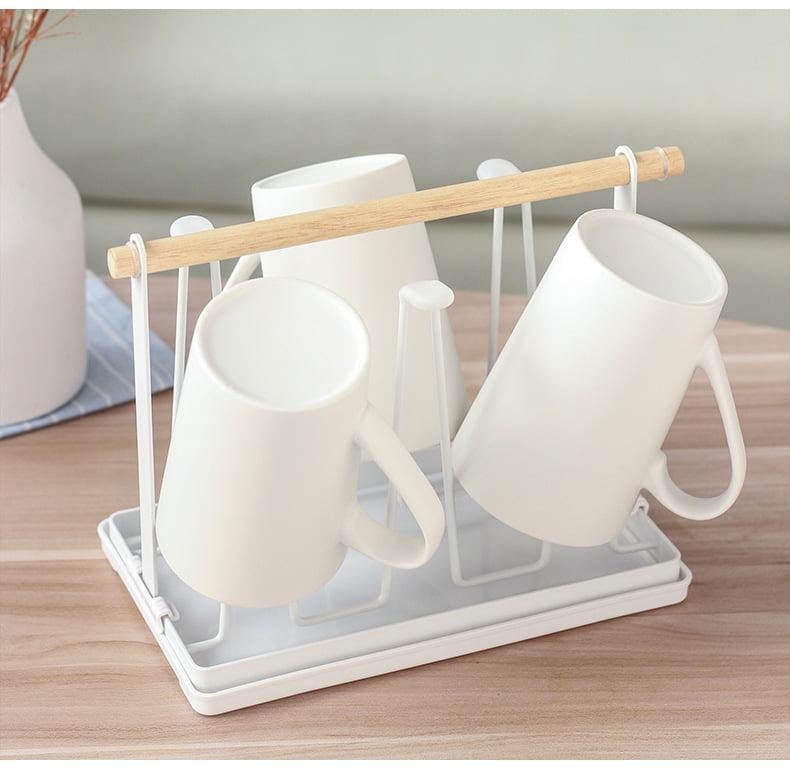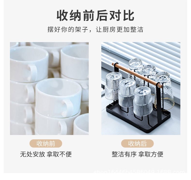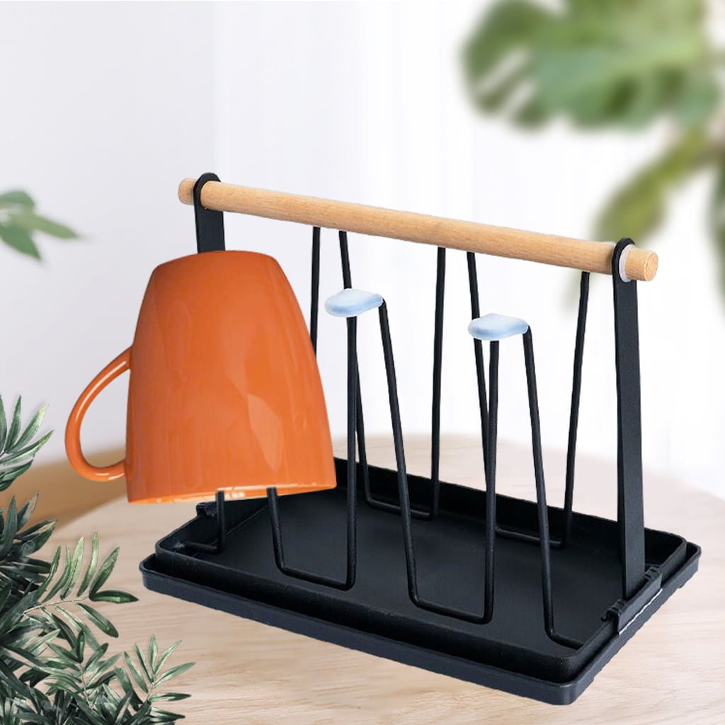 ที่คว่ำแก้ว 6 ใบ ที่วางแก้ว ที่เก็บแก้วน้ำ ที่แขวนแก้ว พร้อมถาดพลาสติก