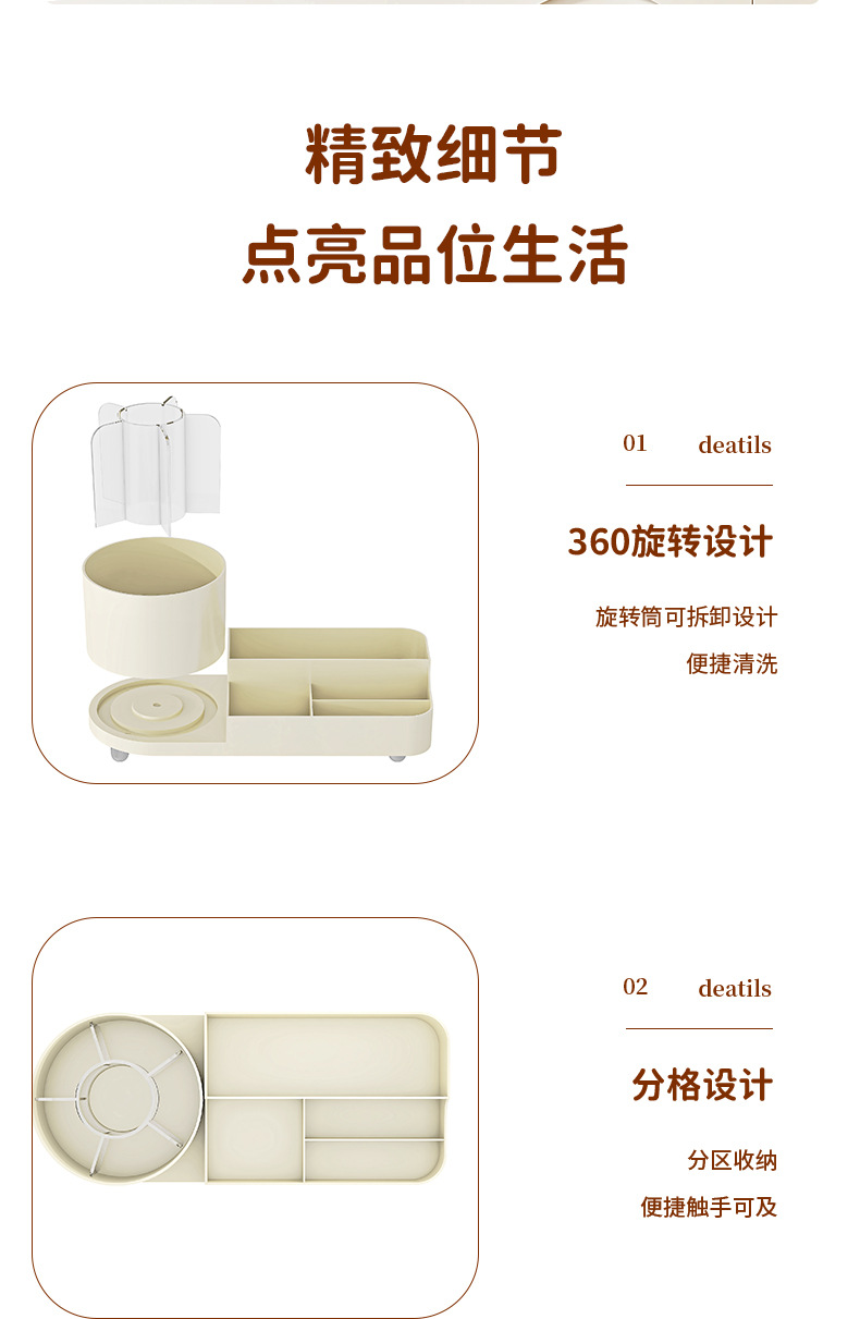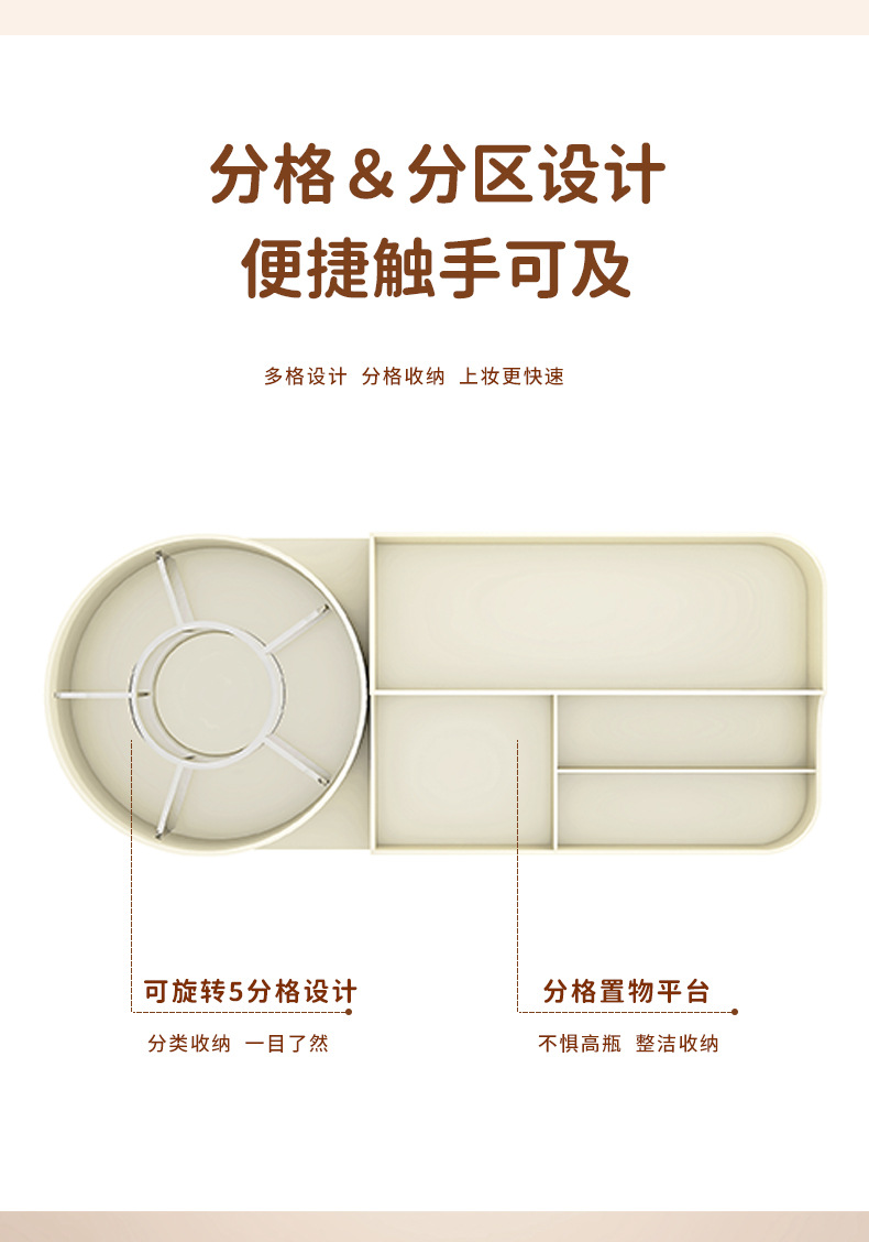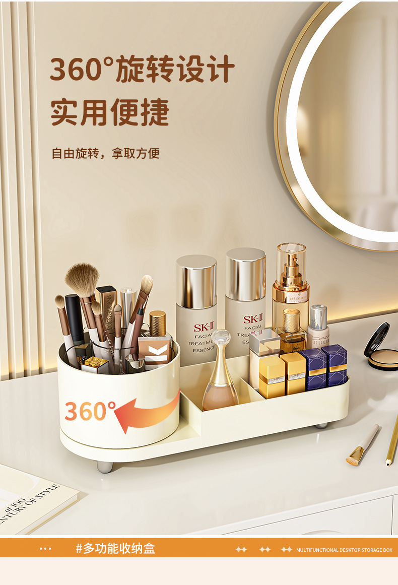 – การออกแบบที่สะดวกสบาย: หมุนได้ 360 องศาฟรี เข้าถึงเครื่องสำอาง สกินแคร์ หรือแปรงแต่งหน้าที่ต้องการได้ง่าย