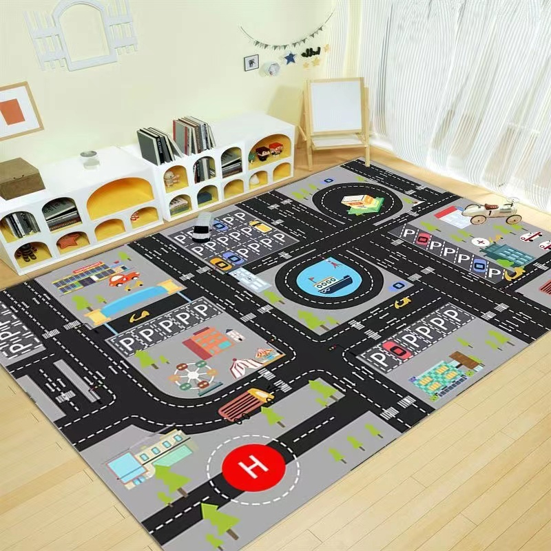 พรมปูพื้นเด็กอนุบาล 120*160CM พรมปูพื้น เสื่อรองคลาน แผ่นจราจร ถนนจำลอง แผ่นรองคลาน