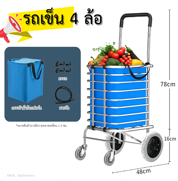 รถเข็นจ่ายตลาด รถตะกร้าเข็นของพับเก็บได้ รถเข็นของช้อปปิ้ง