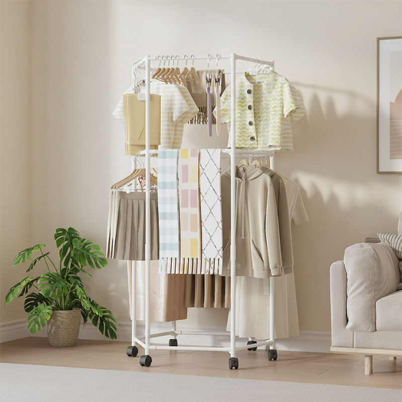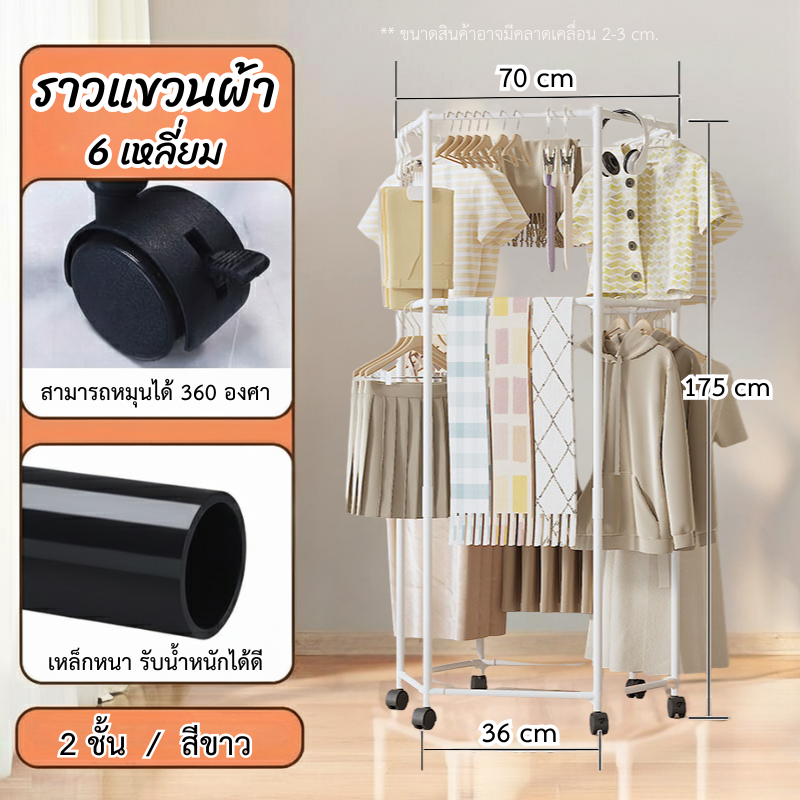 ราวแขวนผ้า มัลติฟังชั่น ราวแขวนผ้าหกเหลี่ยม มีล้อเลื่อน หมุนได้ 360 องศา ล้อล็อคได้ ราวแขวนผ้ามีล้อเลื่อน 1 ชั้น 2 ชั้น ประกอบง่าย ถอดออกได้