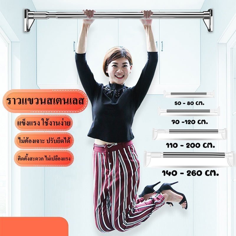 ราวแขวนสเตนเลส ราวผ้าม่าน ราวม่านไม่เจาะ ราวอเนกประสงค์ ราวเดี่ยว ราวแขวนผ้า