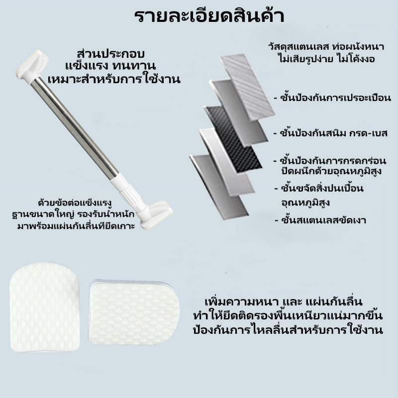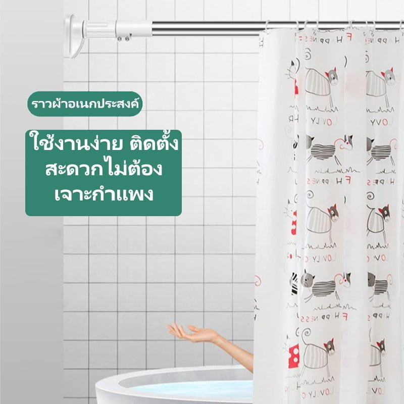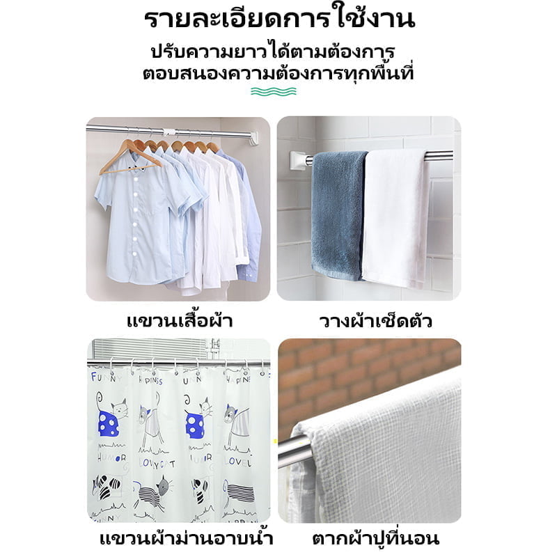 ราวแขวนผ้าไม่ต้องเจาะผนัง ราวผ้าม่านไม่ต้องเจาะ ราวผ้ายึดหนังไม่ต้องเจาะ ราวแขวนสเตนเลส ราวอเนกประสงค์ ไม่ต้องเจาะปรับขนาดได้ สินค้าพร้อมส่งจากไทย