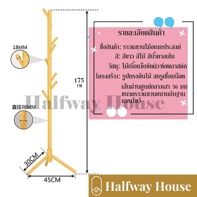 ราวไม้ ราวแขวนไม้ ราวผ้าตั้งพื้น ราวแขวนหมวก ราวแขวนเสื้อ ราวแขวนผ้า ราวสามขา ราวแขวนเสื้อผ้าอเนกประสงค์ พร้อมส่ง