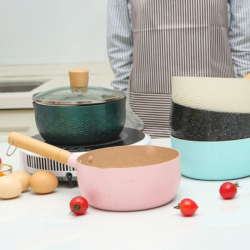 ชื่อสินค้า : หม้อพร้อมฝา กระทะเคลือบหินอ่อน non-stick ก้นแบน สำหรับเตาทุกประเภท