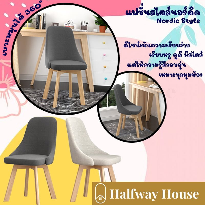 เก้าอี้ เก้าอี้โมเดิร์น เก้าอี้ สไตล์โมเดิร์น เก้าอี้ออฟฟิศ เก้าอี้ทำงาน หมุนได้ 360 องศา สวยทันสมัย ขาไม้สีบีช